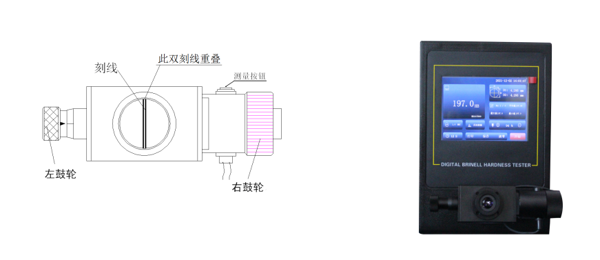 本機(jī)試驗(yàn)過程LCD觸摸屏顯示,壓痕可在儀器上通過測微目鏡直接測量,并能在LCD觸摸屏顯示屏顯示壓痕的直徑,砝碼加力。